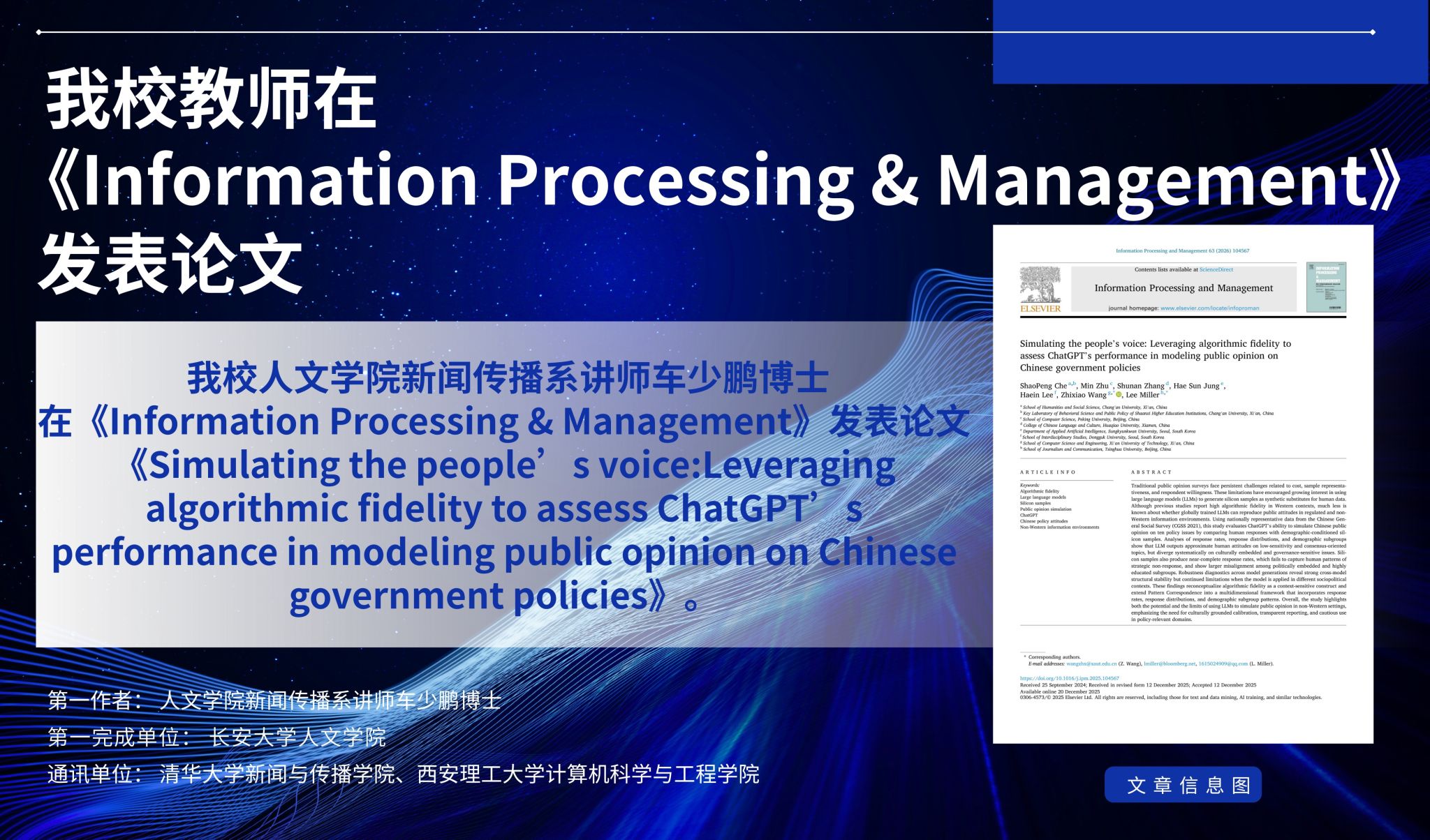 根据上级部门工作要求,现对长安大学与法国高等信息工程师学院合作举办人工智能专业本科教育项目2025年度中外合作办学评估信息进行公示。公示链接:https://hzbx.cdgdc.edu.cn/hzbx/publicity/id?jlbh=11402 公示期:2025年9月22日至10月10日。公示相关事宜,请咨询国际合作与交流处。联系电话:国际合作与交流处:029-61105297;信息工程学院:029-61106512电子邮箱:国际合作与交流处:jingwen@chd.edu.cn;信息工程学院:yingli@...