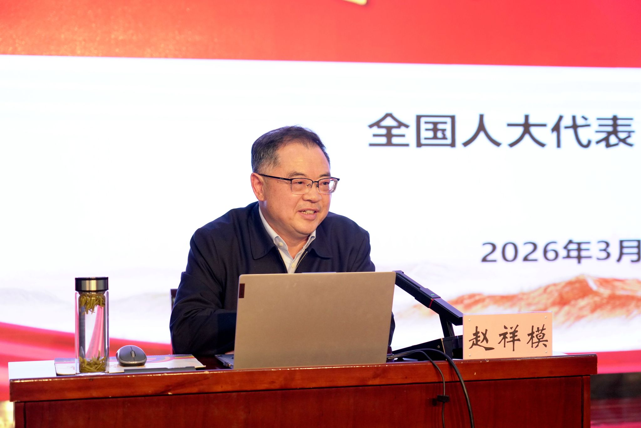 3月25日,学校在北校区北辰会议中心二层报告厅召开校党委理论学习中心组(扩大)学习会议,邀请第十四届全国人大代表、长安大学教授、西安建筑科技大学校长赵祥模作专题辅导报告,解读2026年全国两会精神。会议由校党委副书记徐引正主持。