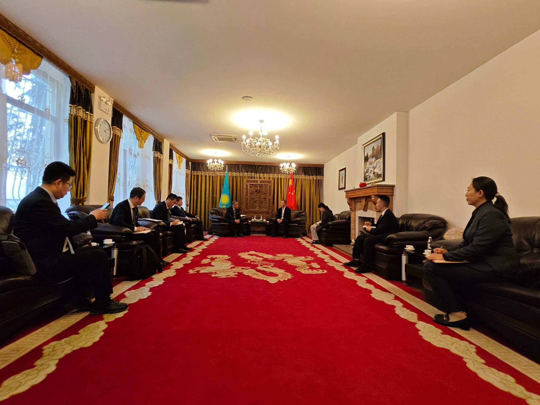 为争取多方支持,推动双方合作有效开展,代表团拜访了中国驻阿拉木图总领事馆。陈建勋向副总领事吕毅等介绍了我校建设发展概况及与ALT大学的合作计划。总领事馆对我校积极拓展对哈科技合作等工作表示高度赞赏,并表示将竭力为两校合作的顺利推进提供支持与协助。