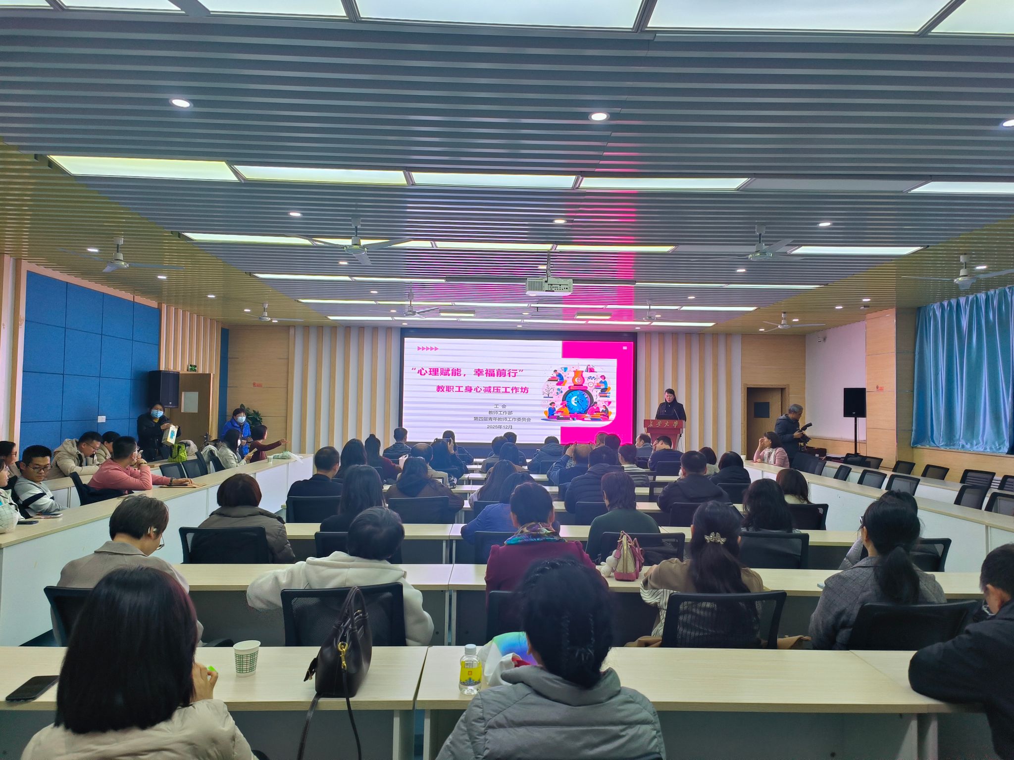 12月4日下午,校工会联合教师工作部、第四届青年教师工作委员会在南校区东院雁博园第一报告厅举办 “心理赋能 幸福前行”教职工身心减压工作坊。活动特别邀请陕西师范大学心理学院王丽教授主讲,二级分会100余名老师到场参与,活动由校工会副主席马艳梅主持。