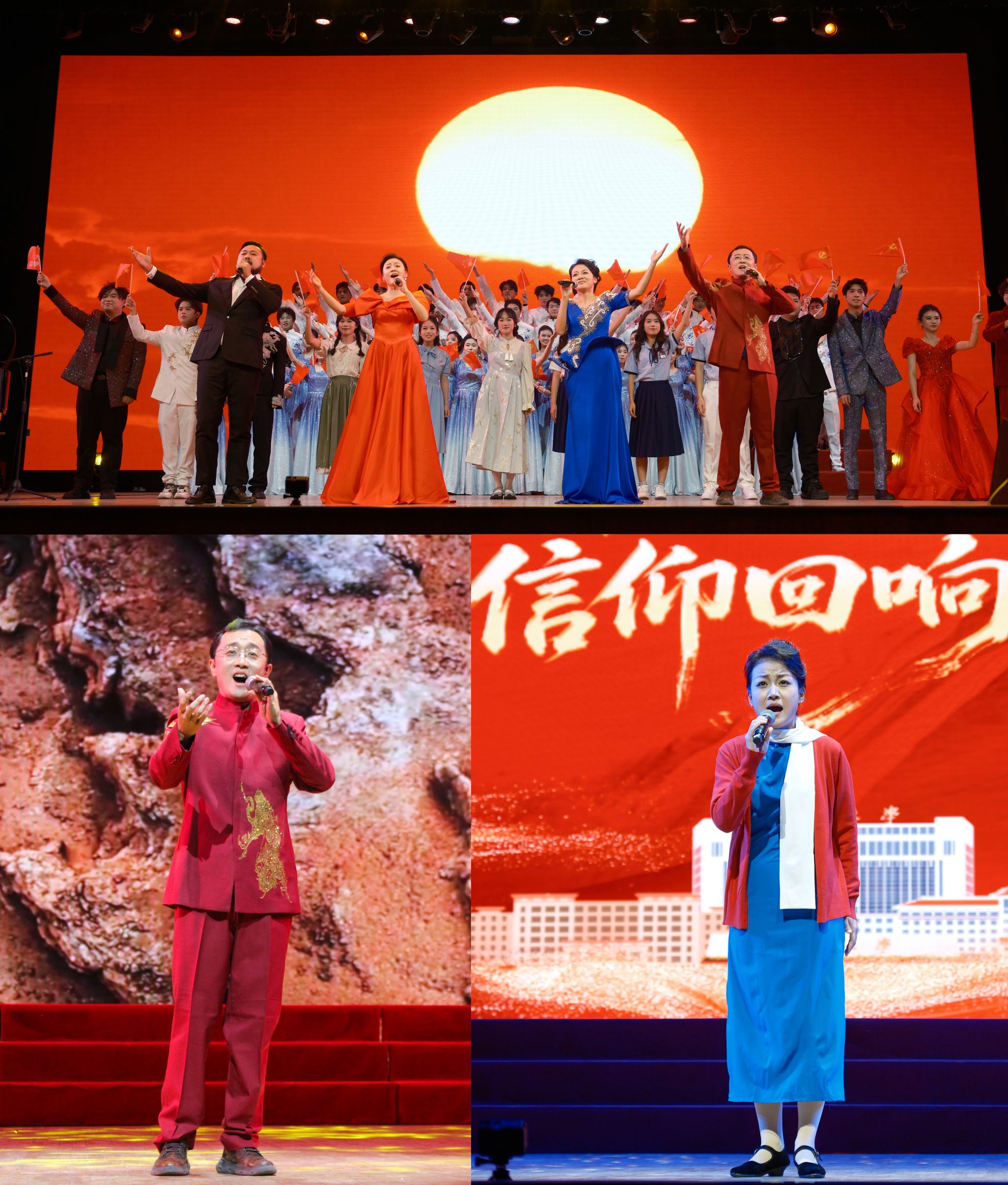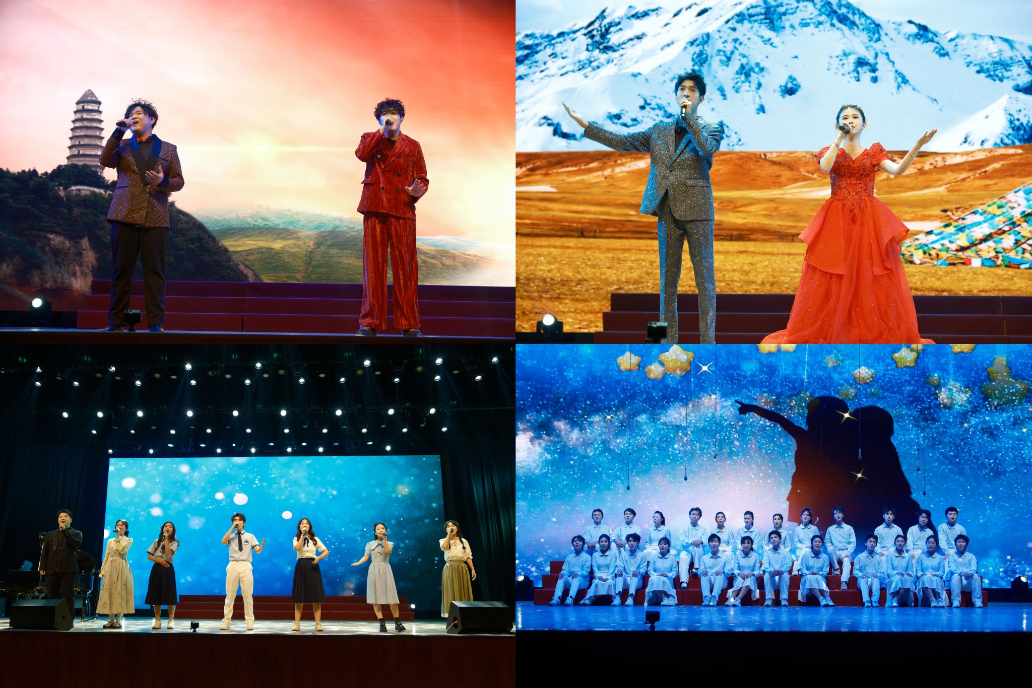 演出在《听妈妈讲那过去的事情》深情的合唱声中拉开帷幕。我校师生与特邀嘉宾联袂登台,以独唱、对唱、联唱、合唱等多种形式,倾情演绎了一系列镌刻着时代印记、承载着民族精神的经典曲目。《红星照我去战斗》将红星化作红色薪火的象征,鼓励当代青年以先辈为榜样,让红色信仰在自己心中继续传递。歌剧《江姐》的主题曲《红梅赞》借红梅凌霜傲雪的品格歌颂了江姐等革命先烈的崇高精神。《黄河颂》唱出了黄河的奔腾壮阔,展现了中华儿女的民族气节和家国情怀。《万里长城永不倒》则激励当代师生以自强不息的精神,筑牢民族复兴的根基。合唱《愿你我再见时》以细腻动人的旋律,致敬了心怀家国、担当使命的英雄们。全体表演者用真挚的情感和精湛的技艺,生动诠释了这些经典歌曲中蕴含的爱国情怀、革命意志与奋斗精神,将观众带入那段波澜壮阔的历史画卷,感受信仰的力量与理想的光芒。