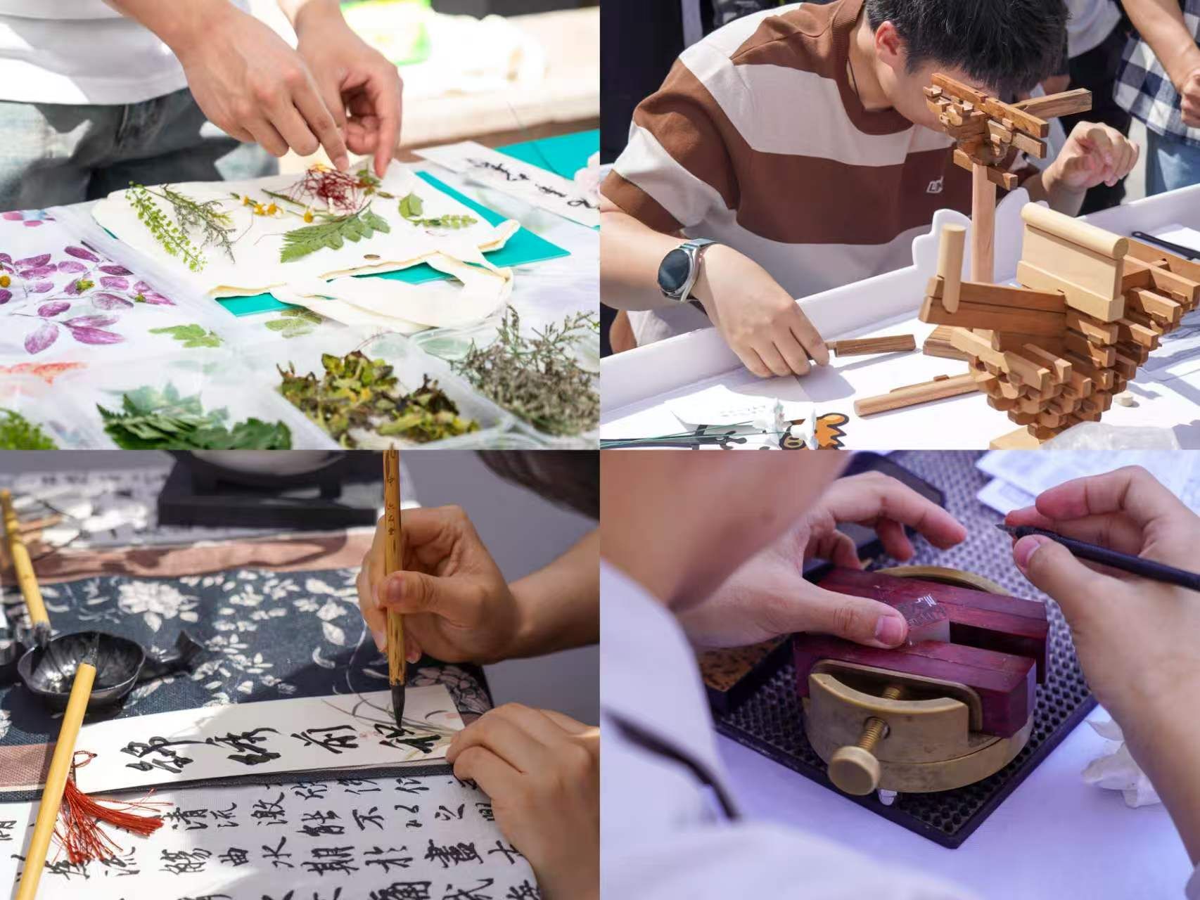 本次诗会以中华诗词文化为核心脉络,精心设置时光长廊、诗影流光、途歌挑战等五个主题互动展区,串联诗词花路漫游、非遗手作体验、主题集章打卡等多元形式,让中华优秀传统文化可感、可触、可参与,深度融入校园文化场景,为师生打造了一场兼具文化底蕴与青春活力的诗词文化盛宴。校友、师生漫步于铺陈着诗词佳句的花路地贴,驻足主题打卡点,沉浸式体验篆刻技艺、诗词创作、书法临摹、焚香品茗、对弈射箭等二十余项互动活动,在传统文化的浸润中涵养人文素养、厚植文化自信。