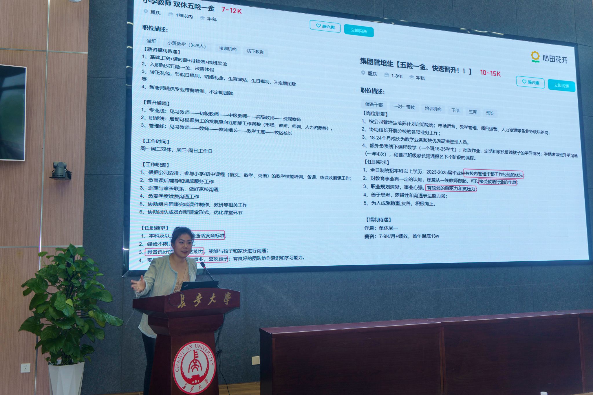 心田花开(西安)培训中心学科负责人李欣围绕毕业生求职能力提升展开专题培训,从用人单位视角出发,分享了求职过程中的关键要点与注意事项,并就常见的面试问题及难点、面试禁忌及策略对同学们进行了专项指导。