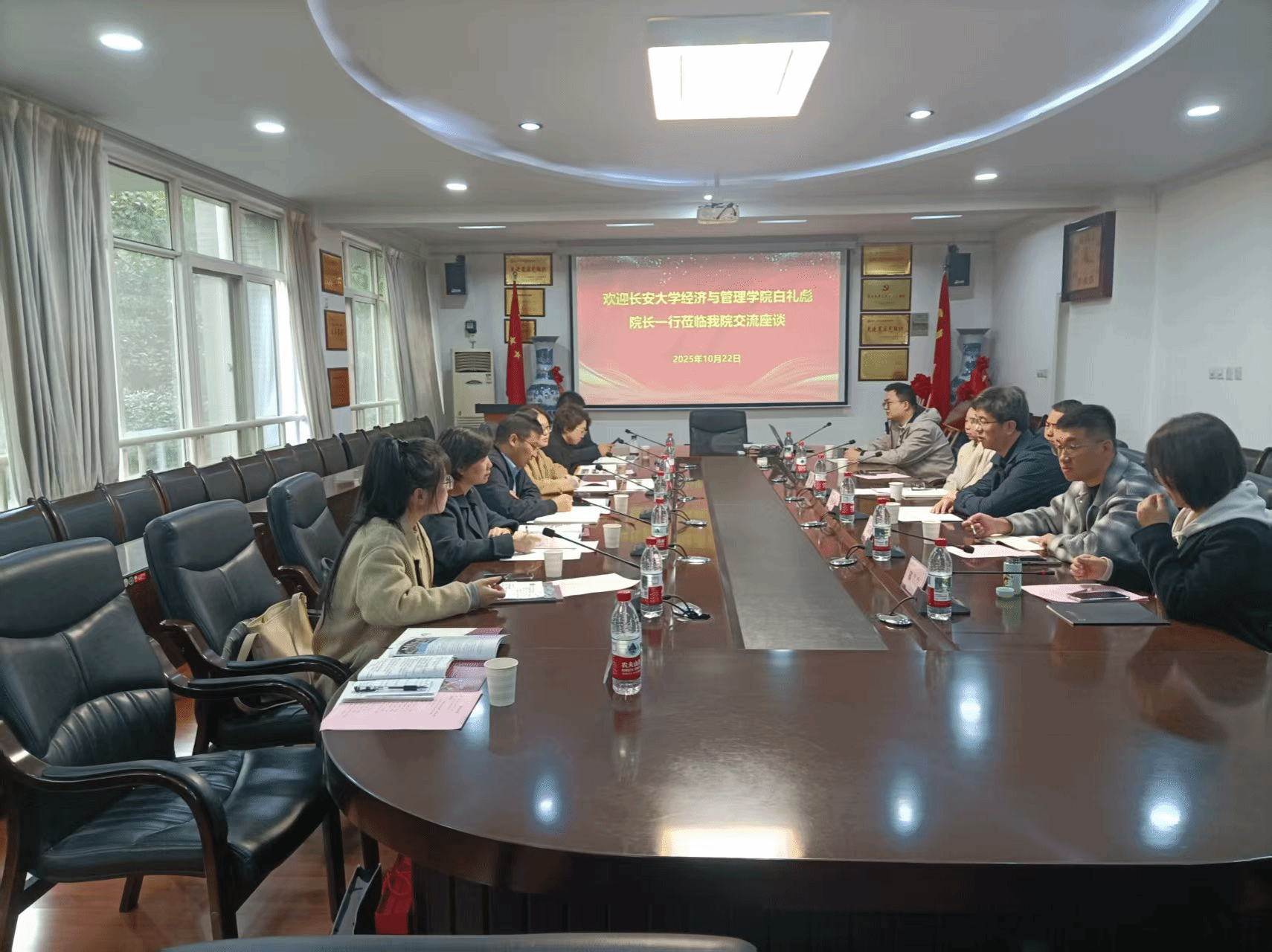 10月22日上午,经济与管理学院副院长白礼彪带领各系主任及学院科研秘书赴西安理工大学经济与管理学院开展调研交流。西安理工大学经济与管理学院院长李建勋、副院长赵璟,以及院长助理乔建麒、科研秘书郑兰兰、应用经济学学科秘书刚翠翠、管理科学与工程学科秘书丁灵等参加会议。