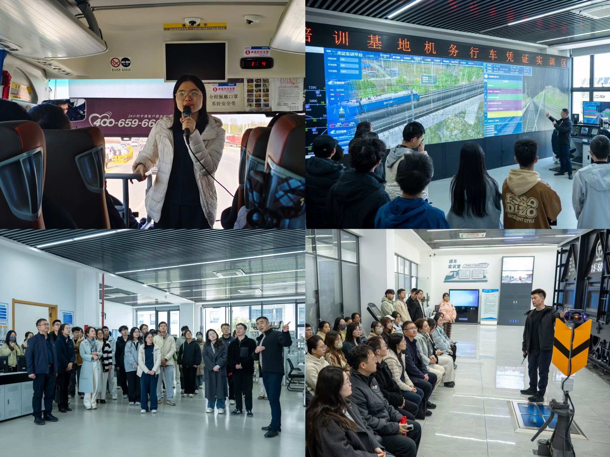 抵达基地后,在专业技术人员的指导下,师生们走进铁路实训设备体验区。高铁轨道检测系统前,大家驻足观摩技术人员操作精密仪器,了解轨道平顺性、几何参数等关键指标的检测原理;模拟驾驶舱内,同学们轮流体验操控流程,在仿真场景中感受高铁驾驶的严谨规范与技术要求。同学们通过近距离观察、亲手操作、实时提问,全方位接触现代铁路的核心技术与实操流程,切实体会到智能化、信息化技术为中国铁路建设注入的强大动力,更对铁路工作者“严谨细致、精益求精”的劳动态度有了直观认知。在基地讲解员的带领下,师生们走进陕西铁路陈列馆,开启一段跨越百年的铁路发展探寻之旅。百年征程中涌现的茅以升、詹天佑等行业先驱,以及新时代铁路劳模的先进事迹,深深震撼着每一位在场学子,更激励着大家涵养不畏艰险、永攀高峰的志气与勇气,深刻领悟“交通强国、铁路先行”的时代使命与战略内涵。