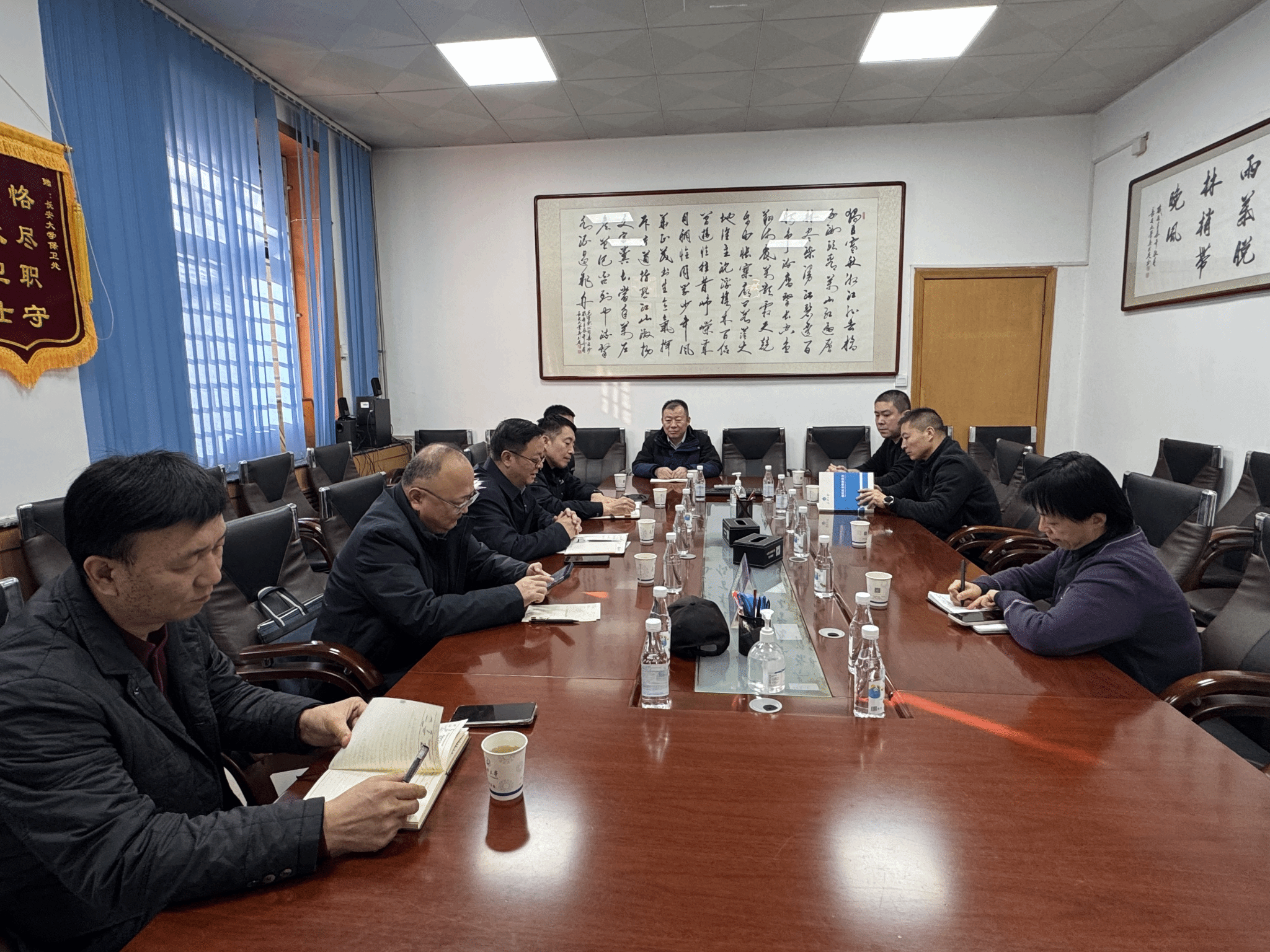 为深化平安校园建设,创新校园安全治理模式,1月16日下午,保卫处(保卫工作部)联合公安雁塔分局、小寨路派出所举行“警校共治工作站”启动仪式暨座谈会。学工部、研工部、南校区办、后勤管理处(社区)相关负责人参会,会议由保卫处(保卫工作部)处长黄飞主持。