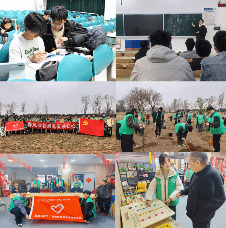 躬身实践强化青年担当。一是朋辈互助学业帮扶。学业优秀学生组建互助帮扶小组,开展课程答疑与经验分享活动,以朋辈力量帮助补考学生培养积极心态、攻克知识薄弱环节。二是志愿服务奉献社会。学院积极响应三月学雷锋志愿服务活动号召,组织学生赴汉长安城未央宫国家遗址公园开展“春风吹新绿,蓝天映初心”主题党日植树活动,以实际行动践行绿色发展理念;组织开展“情暖敬老院,志愿显担当”主题志愿服务,为陕西孝道坊瑞颐医养院老人送去温暖与陪伴。三是实践反思知行合一。学院认真做好寒假社会实践总结宣传及优秀评选,引导学生总结反思寒假社会实践成果,从实践中深刻体会家国情怀与使命担当。