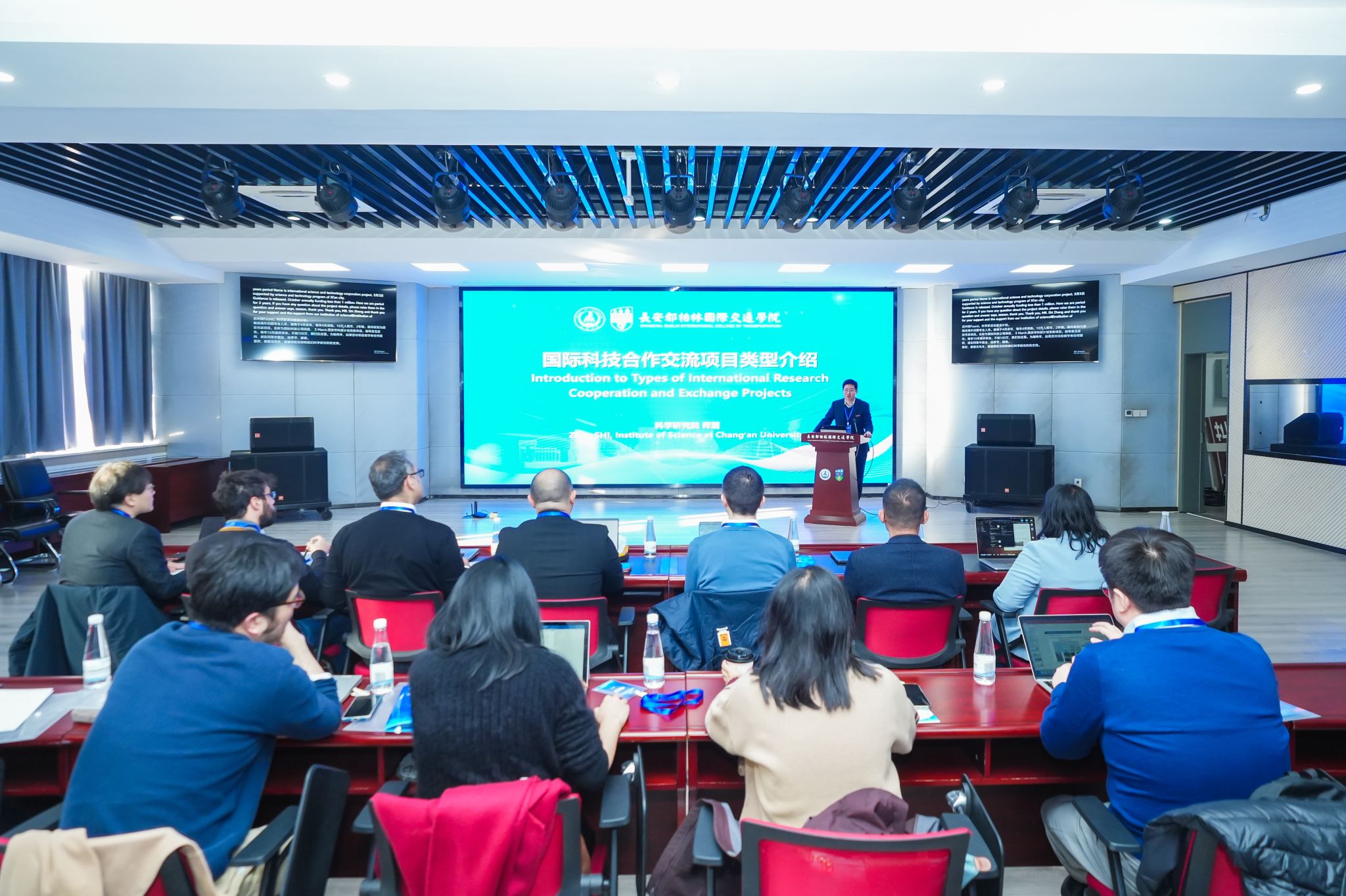 为进一步深化我校与爱尔兰都柏林大学在数智交通领域的科研合作,11月30日至12月1日,长安都柏林国际交通学院在北校区鸿远教学楼举办“长安大学-都柏林大学数智赋能合作办学科研合作研讨会”。会议得到了我校科学研究院、公路学院、汽车学院、运输工程学院、数据科学与人工智能研究院、未来交通学院、建筑学院、以及都柏林大学土木工程学院、机械与材料工程学院、建筑规划与环境政策学院的指导支持。来自两校四十余名教学科研人员参加会议。