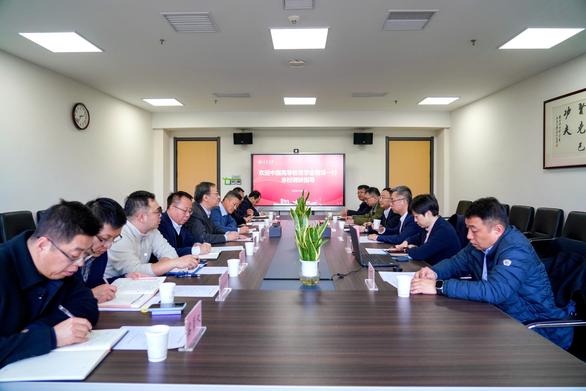 12月24日下午,中国高等教育学会副会长、秘书长李楠,教育部科学技术与信息化司原司长、中国高等教育学会科技服务专家指导委员会执行副主任委员雷朝滋等一行,来校调研工作。校党委书记陈志坚、副校长裴建中出席相关活动。陈志坚对调研组一行的到来表示热烈欢迎,并详细介绍了学校的办学特色、学科优势及近年来在高等教育改革中的实践成果。他表示,学校高度重视第64届高等教育博览会这一重要交流平台,将积极组织参与相关活动,全面展示办学成果,...