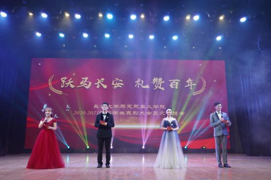 为庆祝中国共产党建党一百周年,深入开展党史学习教育,大力弘扬和培育广大师生的爱国主义精神。5月31日晚,马克思主义学院在长安文化艺术中心大礼堂举办“跃马长安·礼赞百年”2020-2021学年学生表彰大会暨文艺晚会。