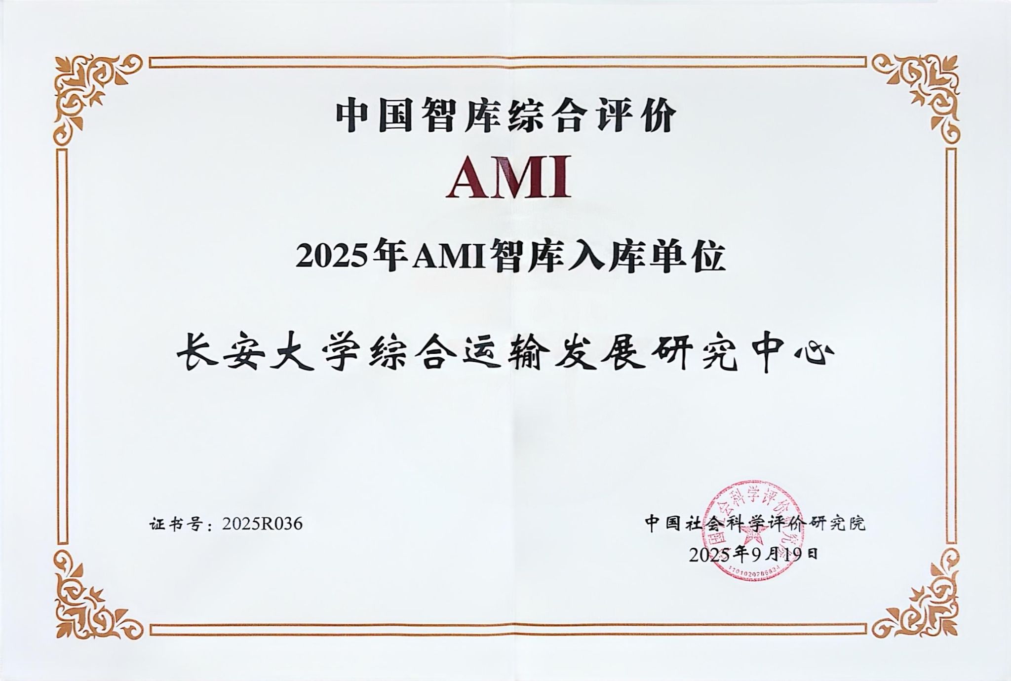 近日,由中国社会科学评价研究院主办的第八届中国智库建设与评价高峰论坛在北京举行,会上正式发布了2025年中国智库综合评价研究项目(AMI)评审结果,我校综合运输发展研究中心、长安文化产业研究中心2家智库成功入选,标志着我校高水平智库建设取得新突破。