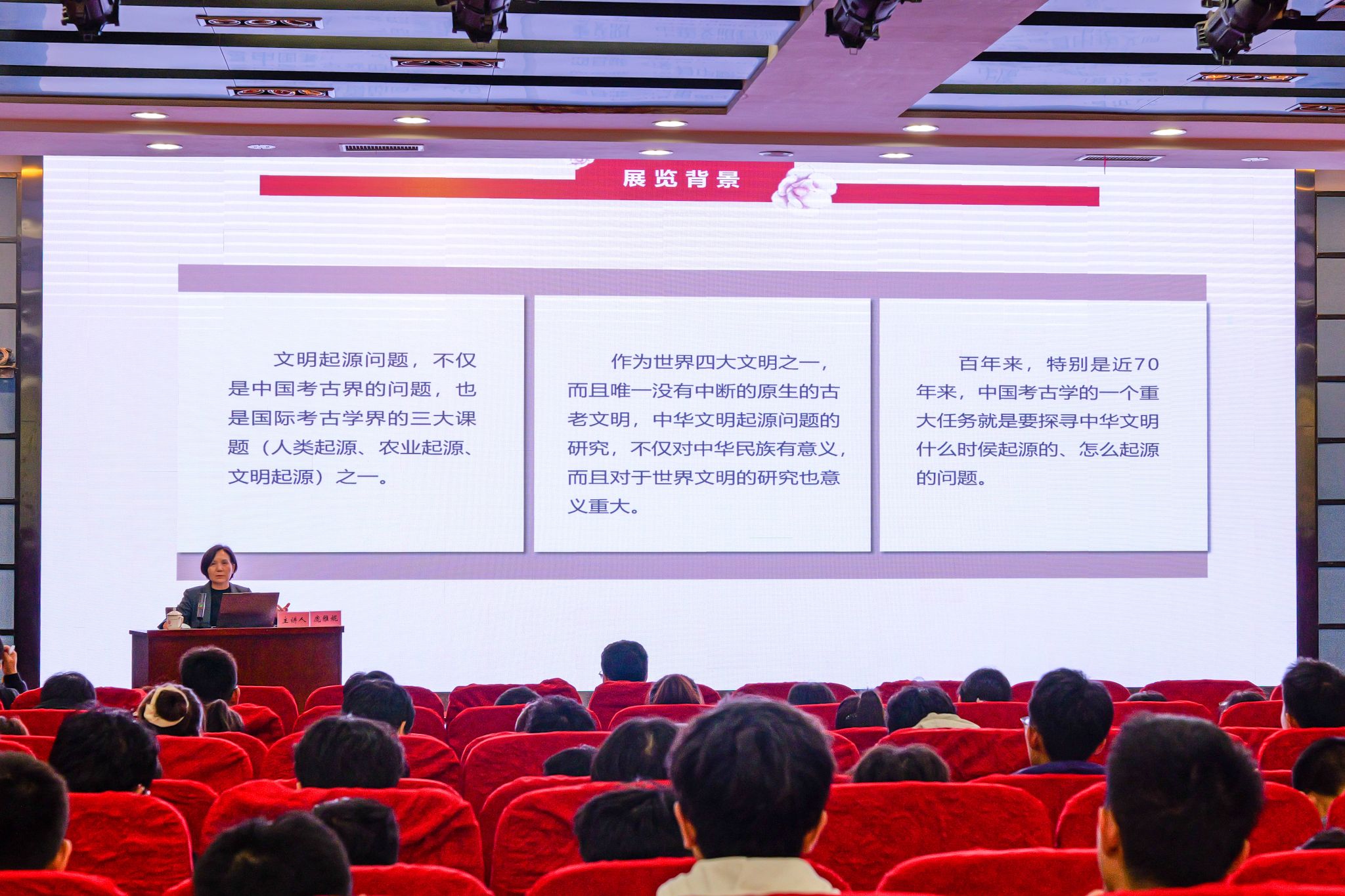 庞雅妮以“‘早期中国’系列展览解码中华文明起源与早期发展”为主题,从“中华文明探源工程”切入,结合陕西历史博物馆的“彩陶・中华”“玉韫・九州”“吉金・中国”三大展览,深入解析了中华文明的起源问题,详细阐述了陶器、玉器与青铜器在文化融合、国家演进和礼乐文明中所发挥的关键作用,系统解读了中华文明“多元一体”的早期发展进程,为师生构建起一部“可触摸的中华文明起源史”。