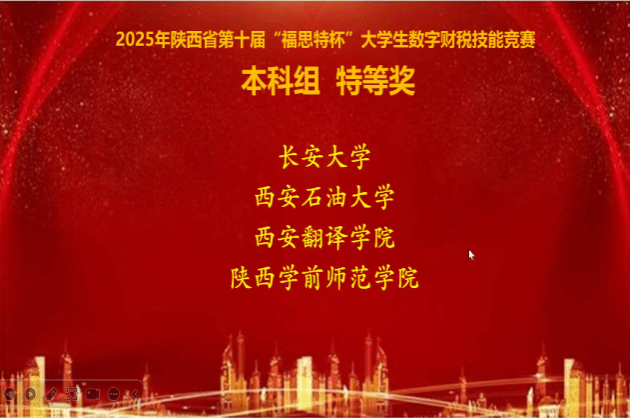 本次赛事由陕西高等学校教学指导委员会工商管理类工作委员会主办,西北政法大学承办,教育部大数据管理课程虚拟教研室、新商科实践教学创新与共享联盟协办,广州市福思特科技有限公司提供技术支持。来自全省36所院校的35支本科生代表队和16支研究生代表队参加竞赛。本次专业学科竞赛不仅彰显了会计学专业师生扎实过硬的专业功底和拼搏进取的精神风貌,而且提高了学生运用现代化信息技术处理会计和税务业务的操作水平。