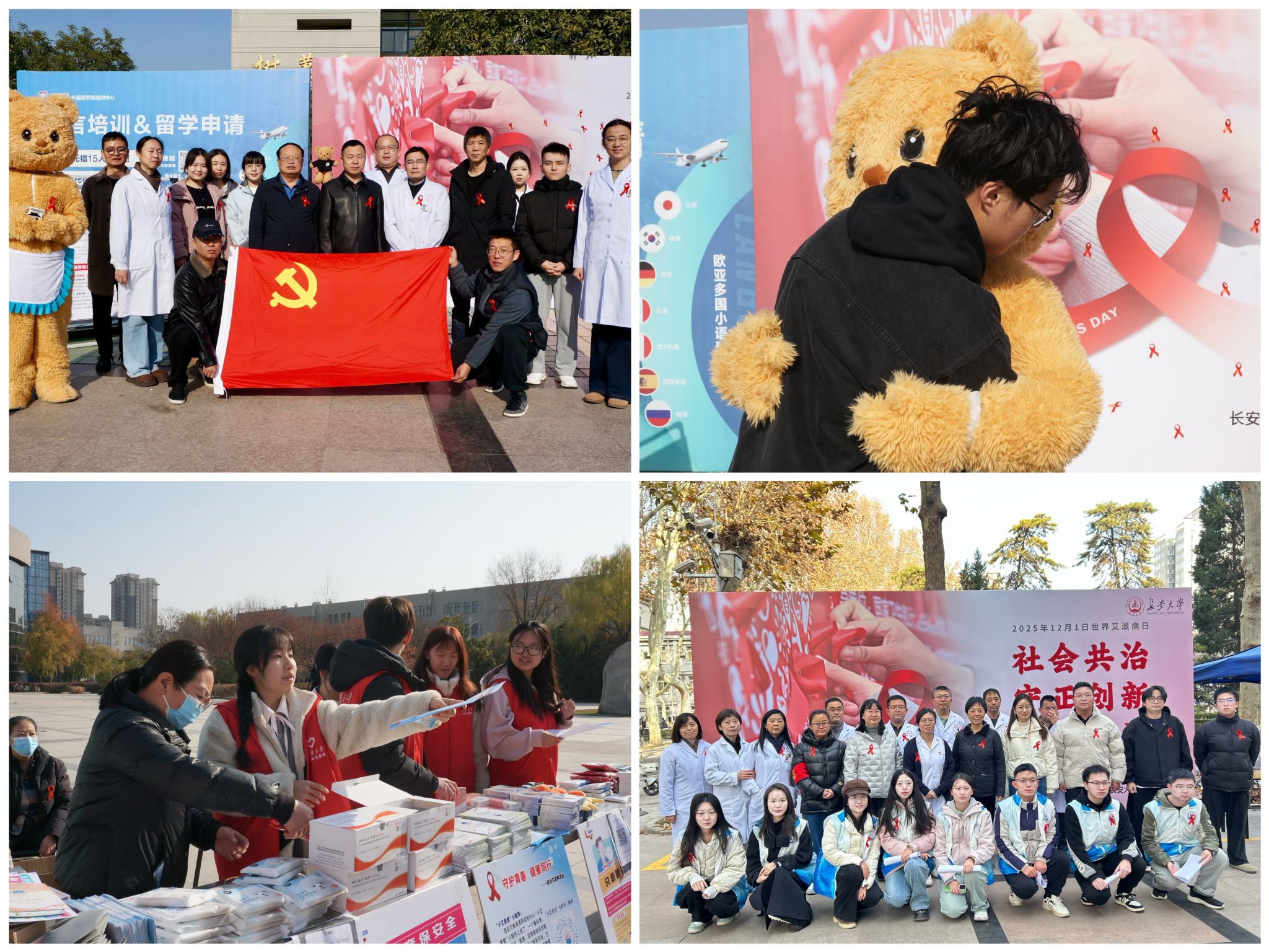 2025年12月1日是第38个“世界艾滋病日”,为推进校园艾滋病防治教育,遏制艾滋病在青年学生群体中的传播,营造师生广泛参与的防艾氛围,校医院联合校团委、学工部、研工部及社区,围绕“社会共治、守正创新、终结艾滋”主题,精心策划开展了系列宣传教育活动。