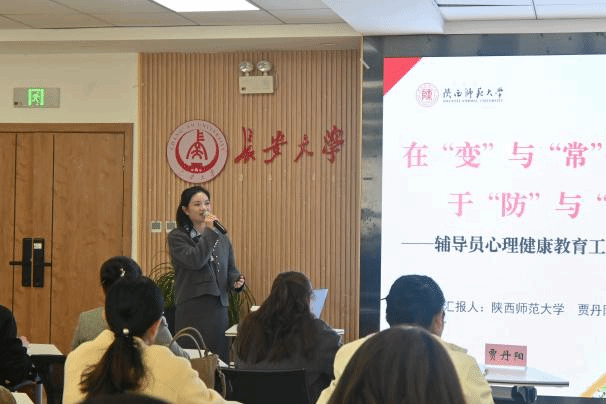 贾丹阳结合新时代高校学生心理健康工作实际,围绕洞悉“变”与“常”、筑牢“防”与“护”、把握“度”与“法”、关照“他”与“己”展开分享。她剖析了当前学生心理问题压力源多元化、表征隐蔽化、求助态度矛盾化等新特征,指出辅导员要准确把握时代变化与学生心理发展规律,在变化中坚守育人初心。结合具体案例,她分享了谈心谈话的共情技巧、家校协同的沟通策略,强调要把握好工作的温度与尺度、原则与灵活。在关注学生心理健康的同时,辅导员也要注重自我关怀与心理调适,保持积极稳定的工作状态。