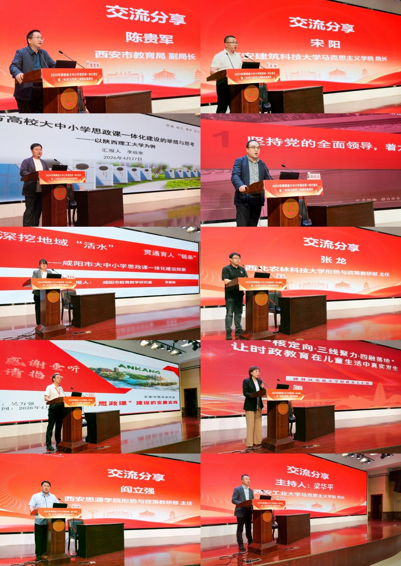 交流分享环节,由西安工业大学马克思主义学院院长梁华平主持,西安市教育局副局长陈贵军、西安建筑科技大学马克思主义学院院长宋阳、陕西理工大学马克思主义学院院长李战奎、西安美术学院马克思主义学院院长韩晓剑、咸阳市教育教学研究中心教研员李香维、安康市教育教学研究中心教研员吴万强、西安市碑林区实验小学校长何虹、西北农林科技大学马克思主义学院形势与政策教研部主任张龙、西安思源学院马克思主义学院形势与政策教研部主任阎立强等9位老师作为代表依次发言,他们分别围绕本单位大中小学思政课一体化建设、形势与政策课教学改革、集体备课、协同育人等主题交流分享实践成果,凝聚育人合力,为全省思政课高质量发展提供有力支撑。