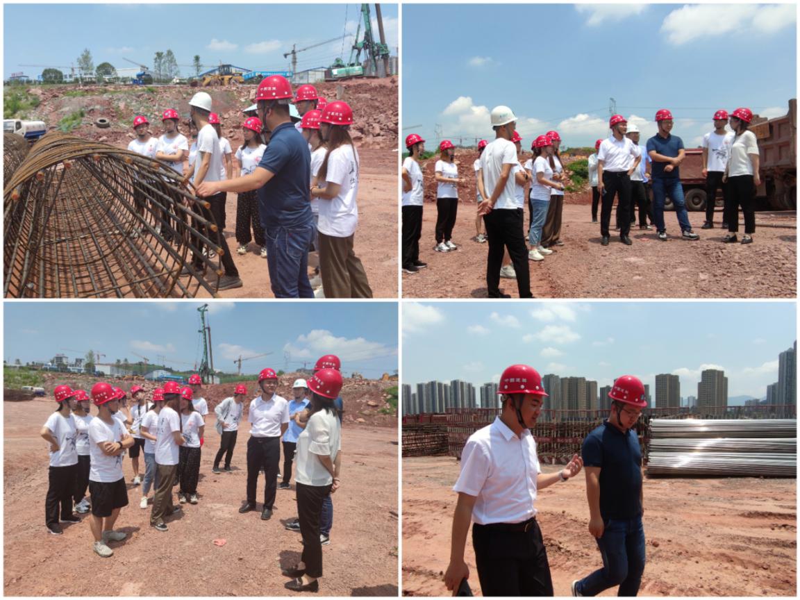“红岩精神放光芒,九载山城意气扬”。为激活红岩精神的时代价值,帮助同学们认知所学专业、规划未来发展,体悟土木建筑行业情怀,培育新时代工匠精神,7月12、13日,实践队一行来到中建二局西南公司、重庆渝北空港实验中学项目开展学习交流。12日,实践队一行赴中建二局西南公司参观学习并召开座谈会。实践队一行通过宣传视频全面了解了中建二局西南公司发展情况、企业文化、代表性项目等。刘云博老师简要介绍了学校、学院人才培养和毕业生就业基本情况。中建二局西南公司人力资源部副经理姚艺与实践队一行从毕业生就业、专业发展、行业特点、就业与深造、假期实习等方面进行了深入的探讨和交流。13日,实践队一行赴中建二局西南公司空港实验中学项目部和施工现场参观学习。中建二局西南公司人力资源部副经理姚艺、空港实验中学新建工程项目部党支部副书记张小庆和项目青年代表与同学们在项目部召开座谈会。他们对实践队一行的到来表示热烈欢迎,向同学们介绍了项目的基本情况,项目中用到的多项技术创新引发了同学们浓厚的兴趣,同学们就项目新技术应用、职业规划与发展、专业前景、人才培养模式等与项目部代表深入交流。项目介绍会后,实践队一行在项目部食堂体验工作餐,同学们纷纷表示很期待自己进入施工一线工作的那一天。下午,在项目部工作人员的带领下实践队一行进入施工现场参观学习,队员们热情高涨,在工地上事无巨细请教各种建筑材料及其应用,从自身认知角度提出各种问题与技术人员讨论交流,收获满满。通过参观学习和交流座谈,同学们获益匪浅,对建筑工程相关专业的就业情况有了进一步的认知,对考研和工作的关系有了更深的理解,初步了解了用人单位人才需求和人才培养模式,深刻意识到要珍惜在校学习时光、注重综合能力锻炼提升、培养吃苦耐劳的奋斗精神,为将来用所学知识助力国家基础设施建设打下坚实基础。