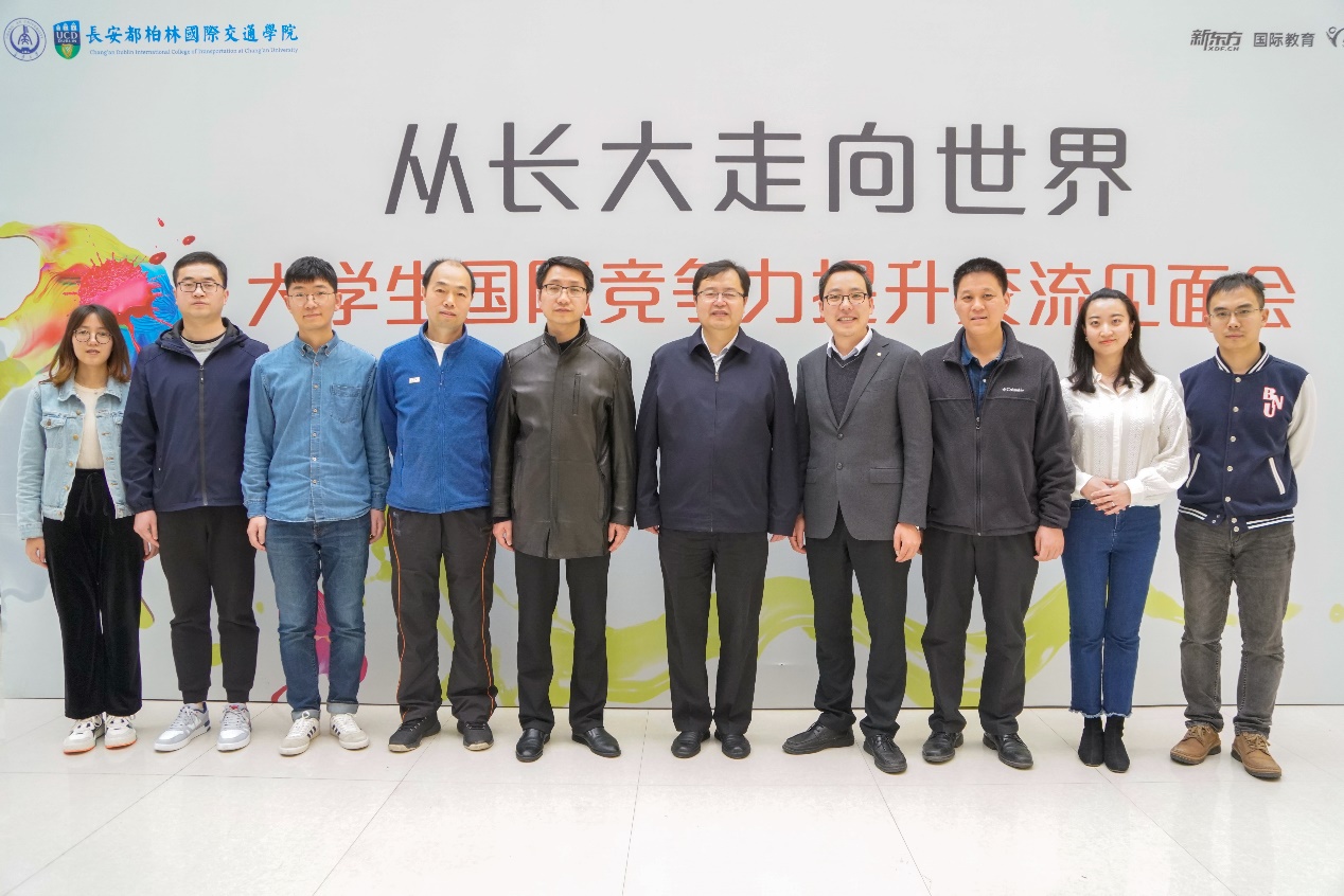 4月26日下午,长安都柏林国际交通学院联合校外专业咨询机构在鸿远教学楼一区一楼大厅举办“从长大走向世界”大学生国际竞争力提升交流见面会。学生工作部部长张骞文,国际合作与交流处副处长高炜,体育部副主任米战,学院党总支副书记、副院长姚以亮,副院长柏强到现场参加了见面会,与学生进行了互动交流。