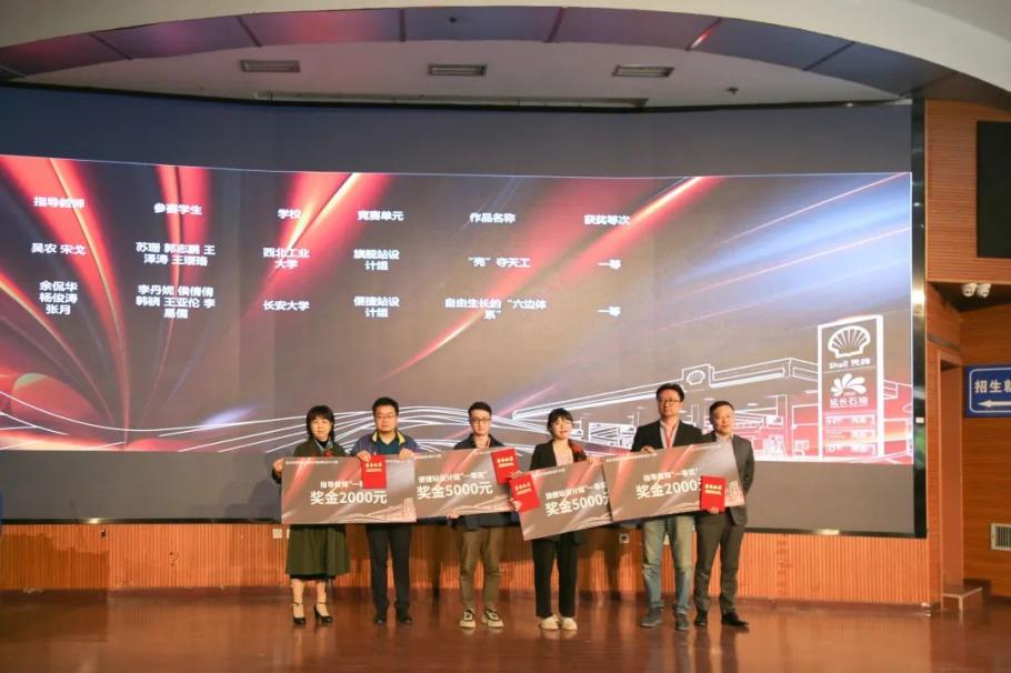 主题沙龙之后,延长壳牌首届油站环境创新设计大赛颁奖典礼举行,嘉宾分别为获奖学生及其指导老师代表颁发证书。