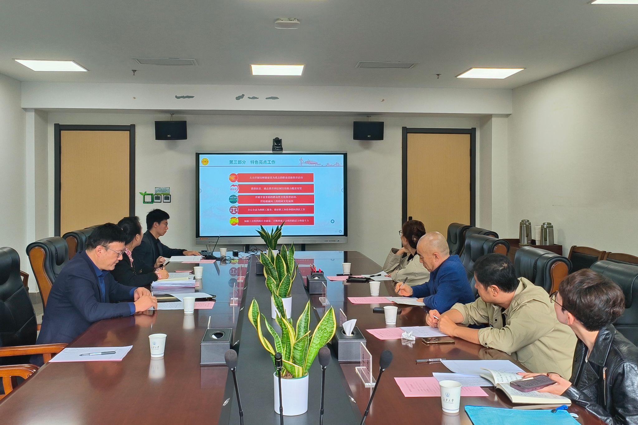 雷如介绍了陕西科技大学工会工作开展情况,分享了在完善组织机构、推进民主管理、创新实物福利采购以及丰富校园文体活动等方面的做法。他表示,长安大学工会在教代会制度建设、财务规范化管理、二级分会建设、教职工文化建设等方面的经验值得借鉴,并邀请我校工会同仁前往陕西科技大学交流指导,共同推进工会工作改革创新。