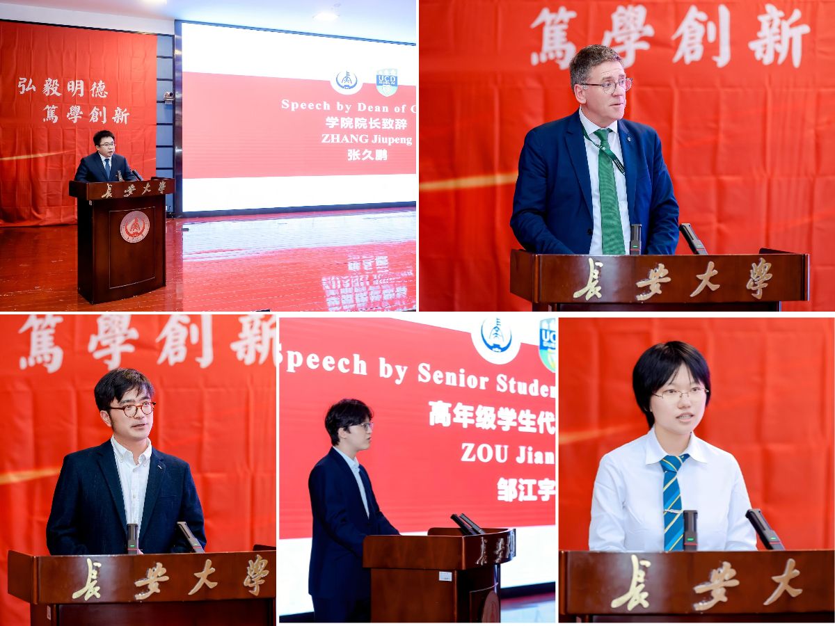 学院院长张久鹏代表全校师生员工,向2025级新生表示热烈欢迎。他指出,长安都柏林国际交通学院积极响应共建“一带一路”倡议和“交通强国”战略,始终致力于培养具有国际视野和复杂工程问题解决能力的复合型人才。他向同学们提出三点期望:一是以国家需要锚定人生坐标,做勇担使命、脚踏实地的筑梦人;二是以创新精神勇立时代潮头,做敢闯敢试、开创未来的先行者,努力成为新技术的开拓者和新领域的定义者;三是以实干姿态砥砺过硬本领,做锲而不舍、知行合一的奋斗者,在理论与实践结合中成长为可堪大用的行业骨干与国家栋梁。