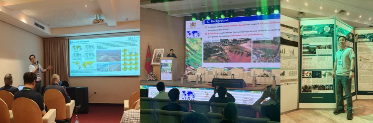 9月14日至19日,代表团赴摩洛哥拉巴特参加由摩洛哥国家农业研究院承办的世界水土保持学会第六届国际研讨会。会议期间,代表团全程听取20余位国际专家的学术报告,内容涵盖气候变化对土壤侵蚀的影响及应对策略、土地利用规划与管理在气候变化背景下的挑战与机遇、水土保持战略的转型等前沿议题。受会议邀请,韩磊作题为“Sustainability challenges of soil and water conservation benefits of vegetation on the Loess Plateau”的分会场报告,康宏亮作题为“Soil Erosion Characteristics of the Agricultural Terrace Induced by Heavy Rainfalls on Chinese Loess Plateau: A Case Study”的报告。代表团还展示题为“Sustainability Challenges of Vegetation in Soil and Water Conservation on the Loess Plateau”的海报。同时,代表团与来自摩洛哥、法国、美国、德国等国家的10余位专家学者围绕团队研究成果、研究方法、学科前沿进展、论文撰写与发表等议题进行深入交流,并互换联系方式,为后续深化合作奠定良好基础。会后,代表团前往摩洛哥国家农业研究院野外研究站,围绕农业土地管理开展实地调研与学术交流。