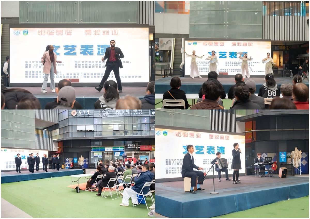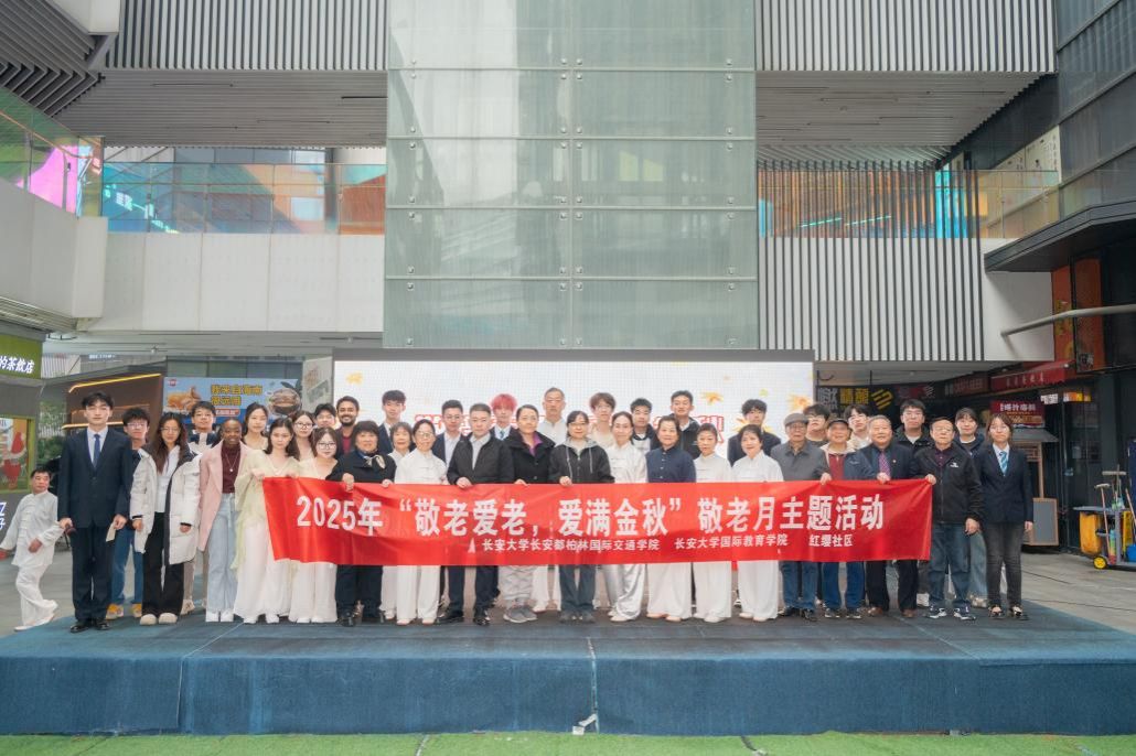 为贯彻党的二十大关于积极应对人口老龄化的战略部署,落实习近平总书记关于让老年群体安居乐业、老有所养、老有所医、老有所为、老有所乐的重要要求, 近日,长安都柏林国际交通学院携手红缨社区在盛安广场举办“敬老爱老,爱满金秋”敬老主题活动。碑林区红缨社区副主任夏媛、社区工作人员、学院青年志愿者代表、国际教育学院留学生志愿者参加此次活动。