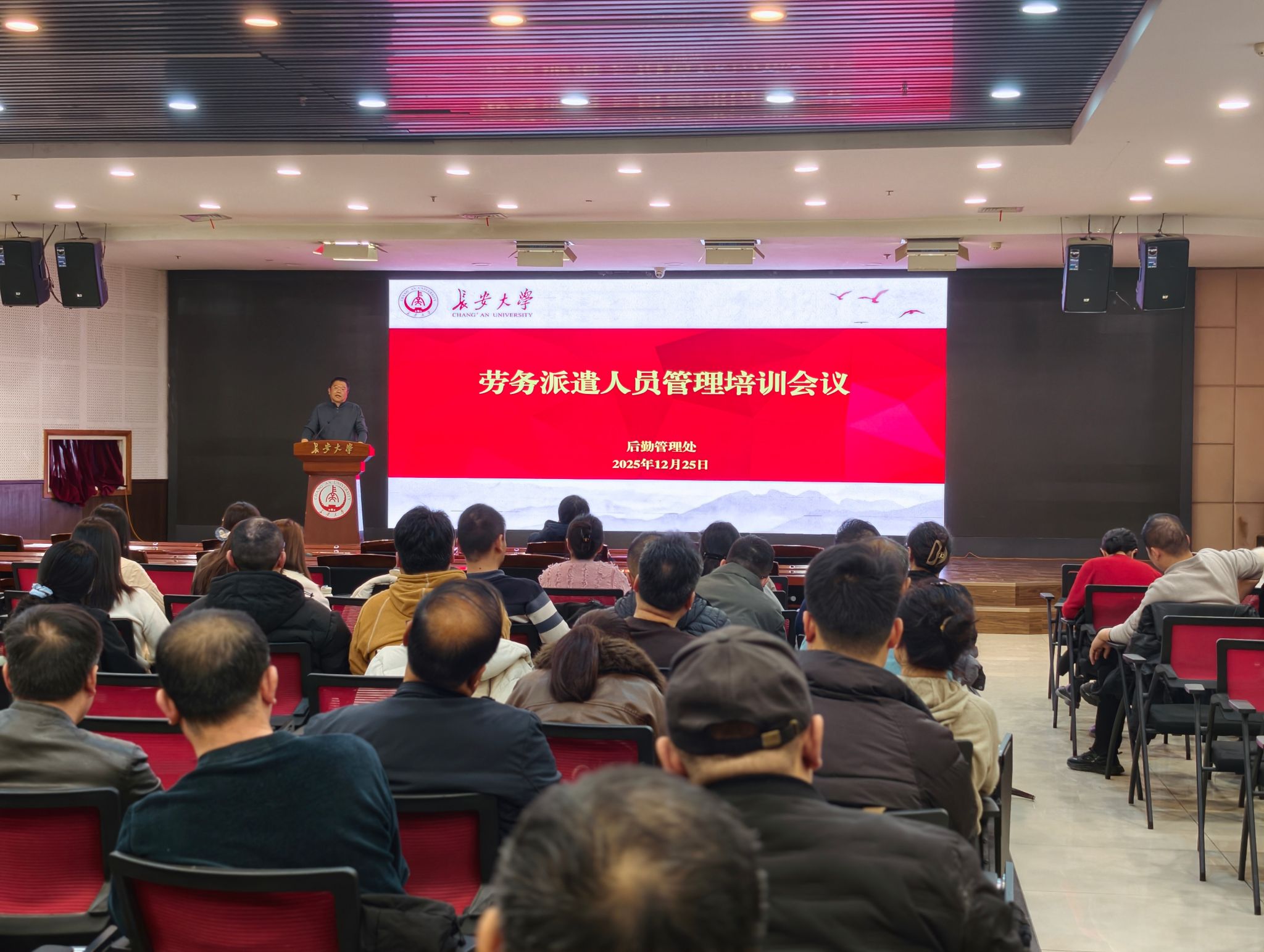 12月25日,后勤管理处在北校区大学生活动中心多功能厅组织召开劳务派遣人员管理与安全专题培训会。后勤管理处相关科级干部,各科室(中心)劳务派遣人员中的一线班组长、基层员工代表、管理员,陕西凡卓人力资源公司工作人员等70余人参加本次培训会。