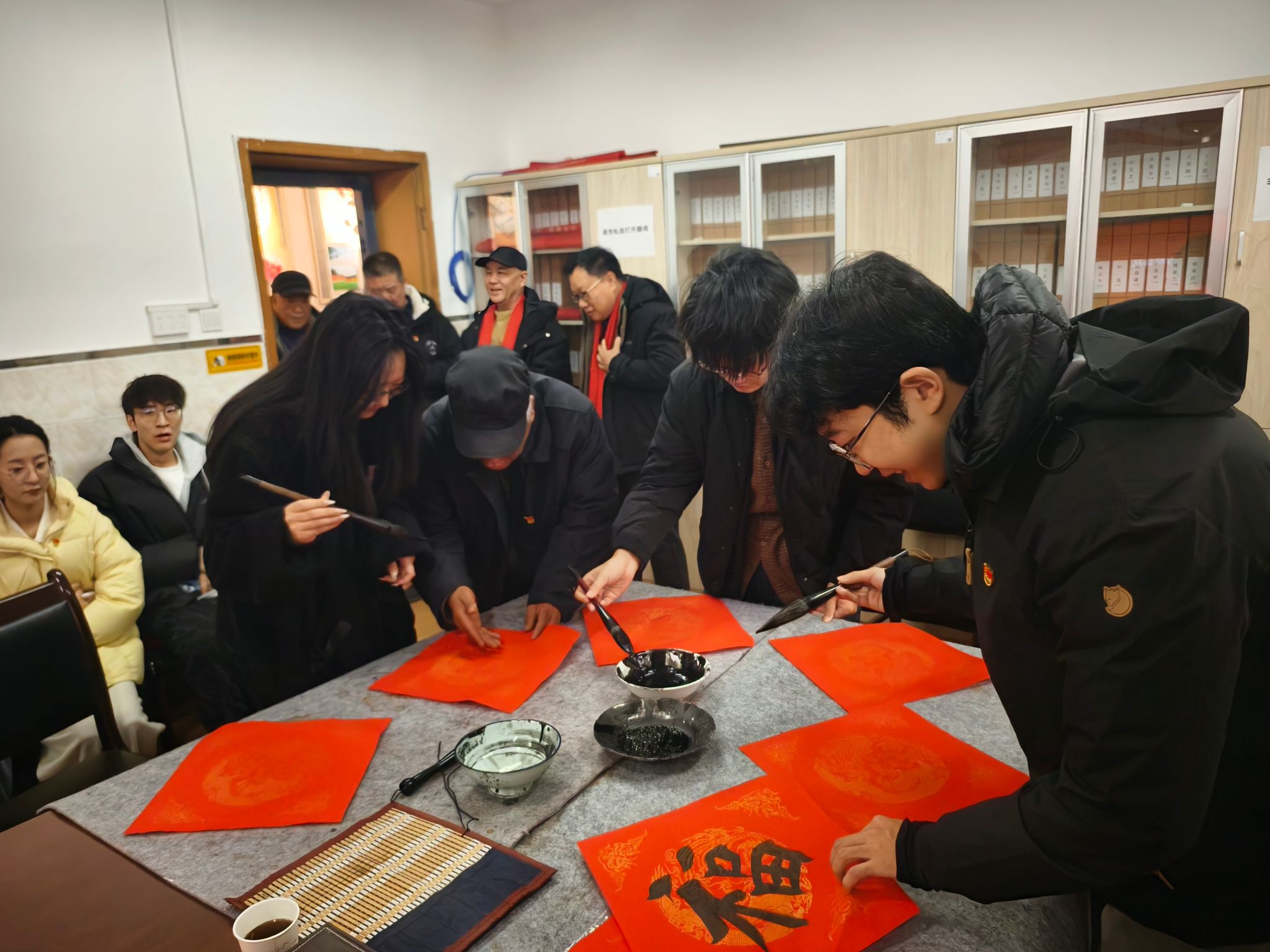 活动现场,学生党员朗诵《新年礼赞——沐党恩笃行,承师志深耕》,围绕党的百年奋斗历程展开,在回顾光辉岁月中重温初心使命,既诚挚致敬了离退休老教师党员的坚守与奉献,也鲜明表达了青年一代赓续薪火、奋楫前行的信念与决心。朗诵结束后,青年学子与离退休党员共同书写新春的祝福。老党员的笔墨端庄沉稳、底蕴深厚,学生们的笔迹虽显稚嫩却灵动洋溢,两代人同台执笔、以墨会友,方寸红纸之上,不仅承载着新春的美好祝愿,更传递着中华优秀传统文化的薪火传承。