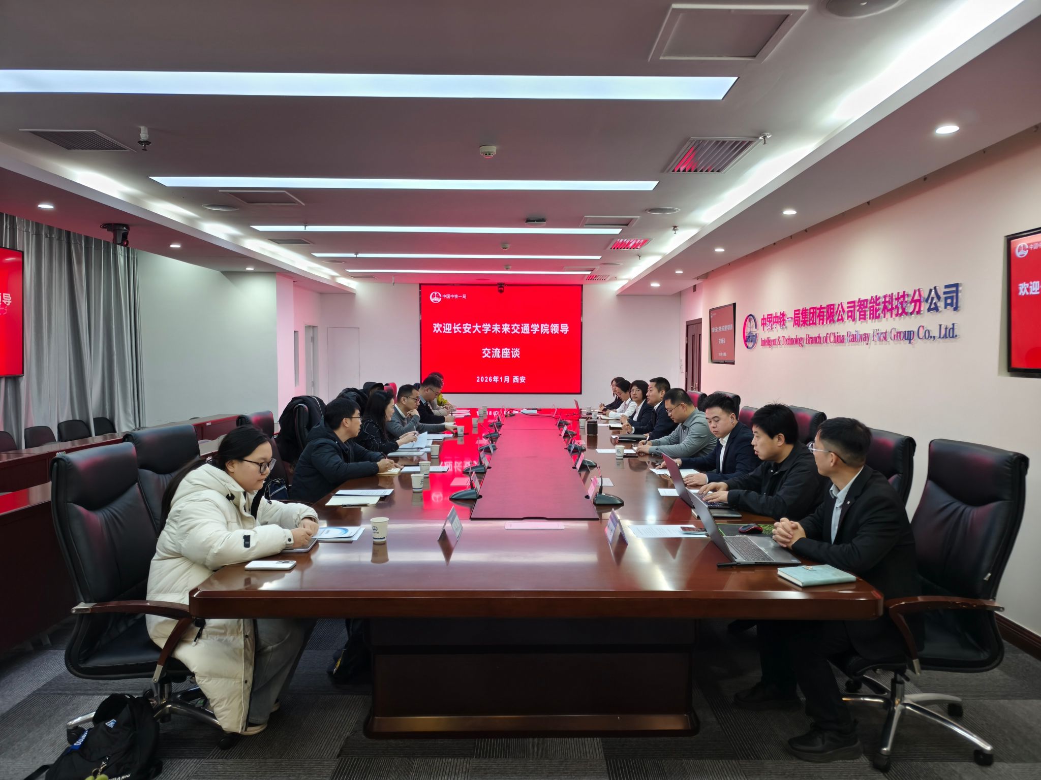 为拓宽毕业生就业渠道,深入把握行业发展前沿动态,推动校企人才供需精准对接与协同育人,1月30日,未来交通学院执行院长孙健、副院长汤颖颖带队,赴中国中铁一局智能科技分公司开展“优企引才”访企拓岗专项行动,双方围绕合作共赢展开深度交流。