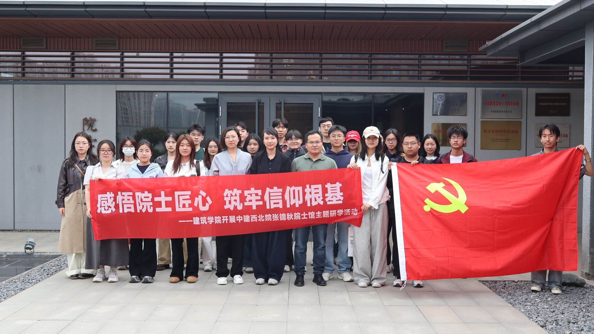 为推动专业思政与党性教育深度融合,引导青年学子厚植家国情怀、感悟大师匠心、勇担时代使命,4月13日下午,建筑学院组织师生党员代表赴中建西北院张锦秋院士馆开展“感悟院士匠心,筑牢信仰根基”主题研学活动。中建西北院华夏建筑设计研究院执行总建筑师范小烨、学院党委副书记王妍婷、学办辅导员以及本硕学生党员代表20余人参加活动。