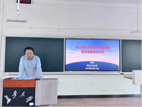 4月17日,理学院在南校区B301教室举办优秀校友面对面活动。本次活动特邀学院优秀校友、西北工业大学副教授、硕士生导师张皓重返母校,分享科研成果和成长历程。理学院党委副书记屈颖、辅导员周小娟及全体研究生参加活动。本次活动由周小娟主持。活动伊始,屈颖对张皓返校表示热烈欢迎与衷心感谢,寄语在场学子以优秀校友为榜样,坚定学术理想、锤炼专业本领,在求知路上脚踏实地、勇毅前行,努力成长为堪当时代重任的青年人才。张皓以“海上蒸发波导与对流层散射混合信道特性研究”为题,结合自身科研经历,系统讲解研究内容,分享团队实践成果与科研心得,以严谨的学术逻辑和丰富的科研案例,帮助同学们全面领略科研魅力与学术前沿。互动交流环节,张皓结合自身求学与科研历程,耐心解答同学们关于专业学习、科研方向、职业规划等方面的问题,现场氛围热烈融洽。