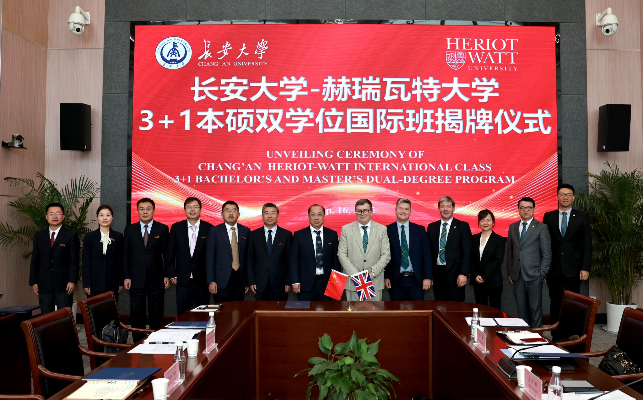 会上,举行了两校合作协议签署仪式与揭牌仪式。李树涛与理查德·威廉姆斯代表两校签署《中外合作办学意向协议》,并共同为“长安-赫瑞瓦特国际班”揭牌;外国语学院党委书记张永与赫瑞瓦特大学招生与录取主任迈克尔·贝茨(Michael Bates)共同签署《英语专业3+1本硕双学位项目协议》。