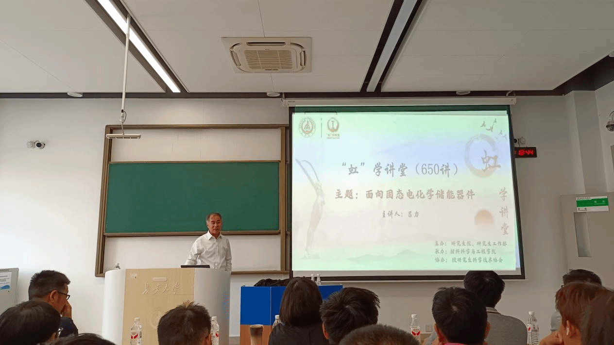 9月12日上午,由研究生院、研究生工作部主办,材料科学与工程学院承办,校研究生科学技术协会协办的“虹”学讲堂第650讲在北校区WH1101举办。新加坡国立大学吕力教授作题为“面向固态电化学储能器件”的报告,材料科学与工程学院郭亚杰教授主持报告会,相关学院共150余名师生参加讲座。