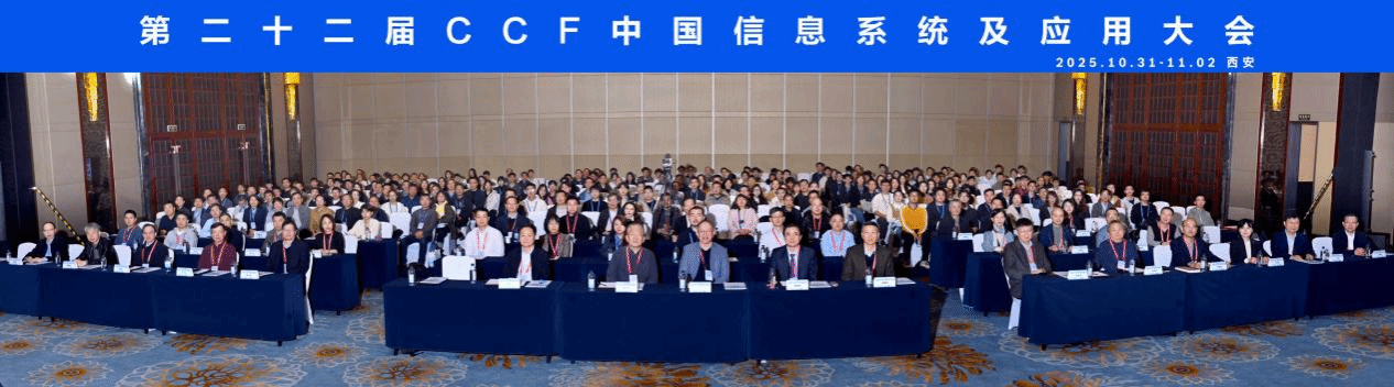 10月31日至11月2日,第22届CCF中国信息系统及应用大会(WISA 2025)在陕西西安召开,此次会议由中国计算机学会(CCF)主办,CCF信息系统专业委员会、长安大学、西北大学共同承办,北京百度网讯科技有限公司、陕西师范大学、西安建筑科技大学、西安理工大学、西安科技大学、陕西省计算机学会协办。大会围绕“智能信息系统”主题,搭建了学术、企业、政府交流平台,来自清华大学、北京理工大学、西安交通大学、华中科技大学、华东师范大学、同济大学、东北大学、西北工业大学等单位的400余位知名专家学者和各界代表参与会议。