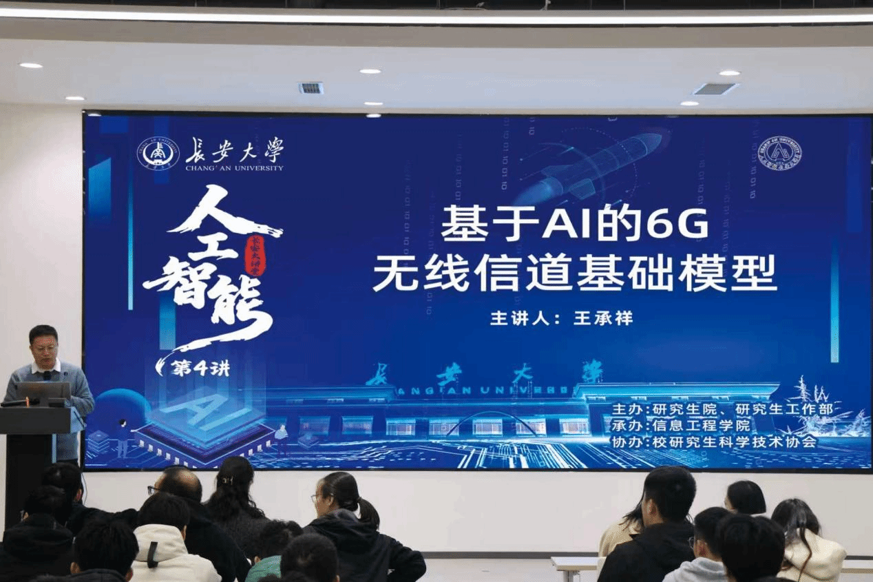 11月24日上午,由研究生院、研究生工作部主办,信息工程学院承办,校研究生科学技术协会协办的“人工智能”长安大讲堂第4讲在北校区明德园创新大厦101报告厅举行。东南大学王承祥教授作题为“基于AI的6G无线信道基础模型”的报告,信息工程学院党委副书记郭咏梅主持报告会,相关学院共120余名师生参加讲座。