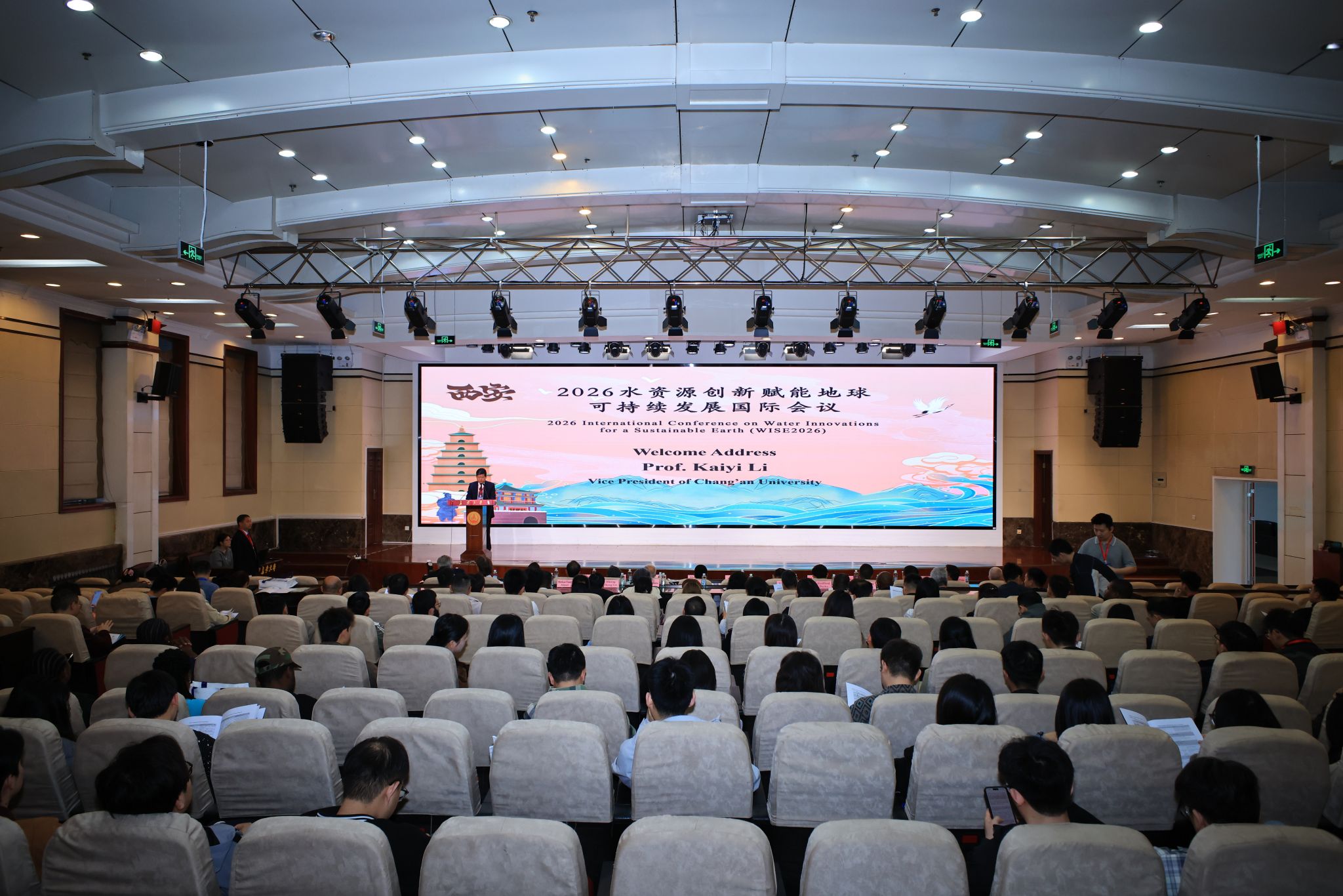 4月10日至12日,由长安大学与南非祖鲁兰大学共同主办,长安大学水利与环境学院、黄土科学全国重点实验室等单位承办,中国水利水电第三工程局有限公司、中煤科工西安研究院(集团)有限公司等单位协办的“2026水资源创新赋能地球可持续发展国际会议(WISE2026)”在我校召开。长安大学副校长黎开谊教授出席开幕式并致辞。南非祖鲁兰大学科学、农业与工程学部部长Khoboso Lehloenya教授,中国水利水电第三工程局有限公司安全总监、副总工程师兼工程科技部主任李兆宇,南非祖鲁兰大学水科学与技术研究中心主任Vetrimurugan Elumalai教授分别代表共同主办单位、协办单位和大会共同主席致辞。开幕式由长安大学国际合作与交流处副处长(主持工作)李培月教授主持。