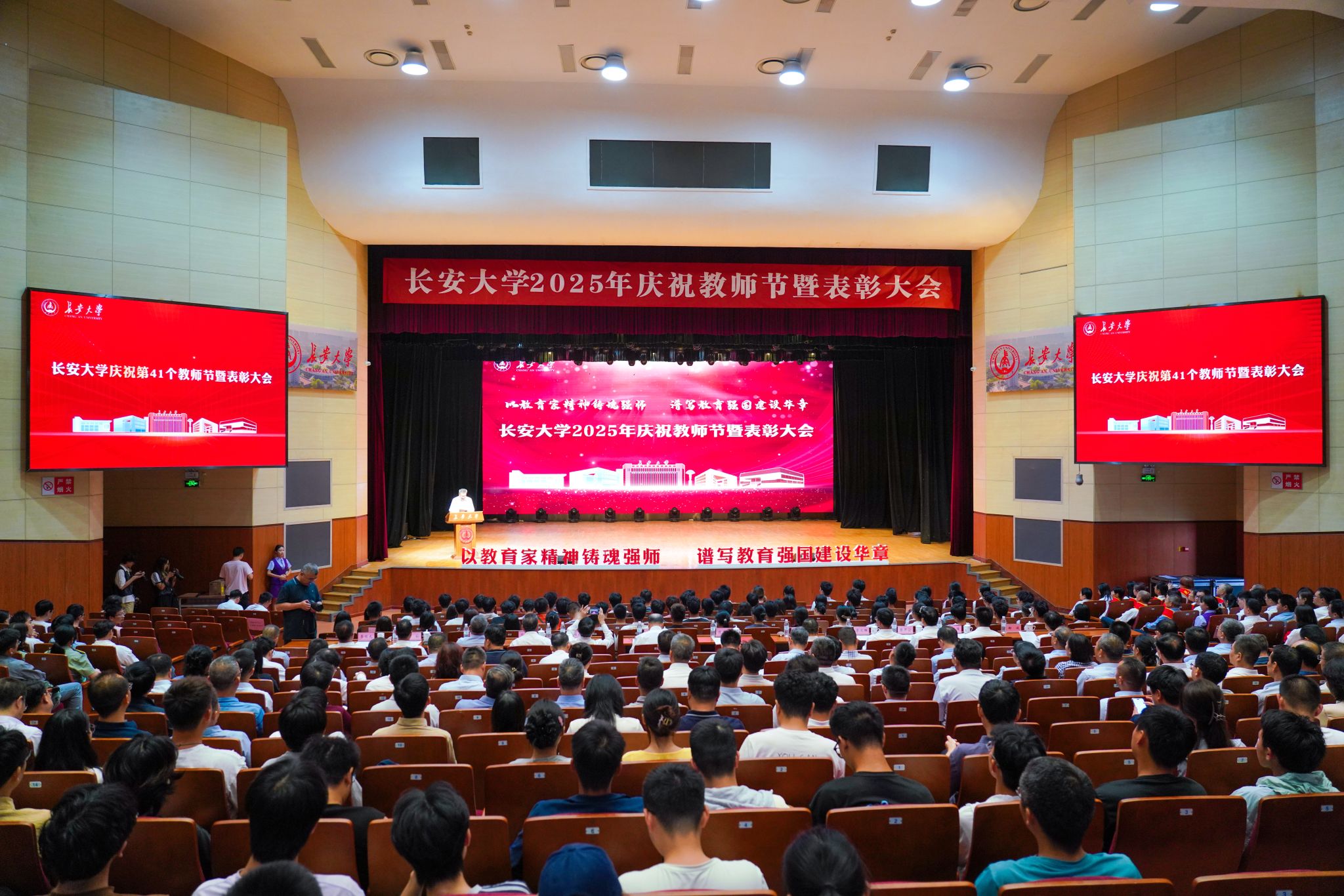 9月9日下午,学校在北校区长安文化艺术中心召开2025年庆祝教师节暨表彰大会。全体在校校领导、校党委常委出席大会。大会由校党委书记陈志坚主持。会场陈志坚向受表彰集体与个人表示祝贺。他指出,全体教职工要大力弘扬教育家精神,坚持“四个相统一”,注重“六个下功夫”,争做“四有”好老师,当好“四个引路人”,努力成为新时代“大先生”。他进一步勉励大家,要赓续“自强不息、求真务实、团结奋进、追求卓越”优良传统,以敢想、...
